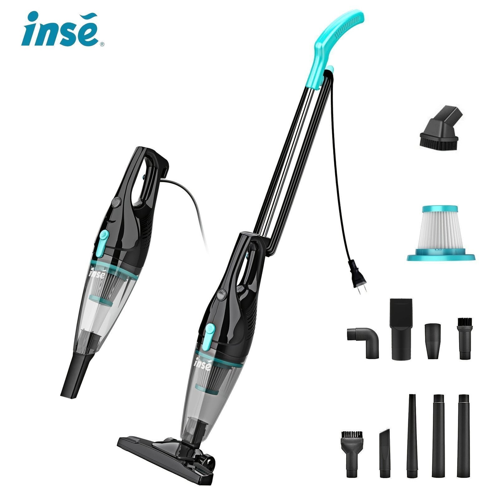INSE R3s Bagless Stick Vacuum - 4-in-1 Lightweight Corded Vacuum Cleaner for Hardwood Floors. Carpet. Car. and Pet Hair - Ultra Quiet and Handheld-Compatible
